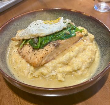 (Creamy cheddar grits topped with a sunnyside up egg and any of these delicious combinations) (GF):*